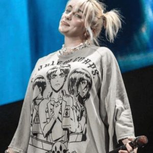 Durante la permanenza in Giappone Billie Eilish ha iniziato ad apparire come ospite in una serie di spettacoli televisivi di varietà. Nella sua ultima apparizione televisiva, la cantante è rimasta sbalordita quando lo staff le ha consegnato uno shikishi disegnato a mano da Hajime Isayama. Il creatore di Attack on Titan ha inchiostrato Billie mentre incontra Eren e altri personaggi dell’opera.